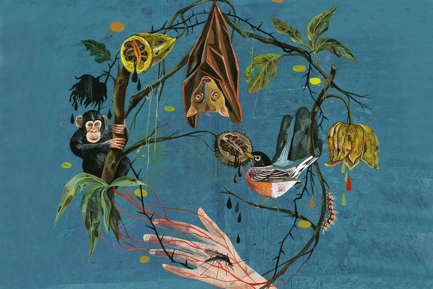 Σήμερα δεν υπάρχουν παθογόνα απρόσβλητα απ’ το κεφάλαιο. Ακόμη και τα πιο απομακρυσμένα επηρεάζονται, αν και περιφερειακά. Ο έμπολα, ο ζίκα, οι κορονοϊοί, ξανά ο κίτρινος πυρετός, μια ποικιλία γριπών των πτηνών κι ο ιός της αφρικανικής πανώλης των χοίρων βρίσκονται μεταξύ των πολλών παθογόνων που βρίσκουν τον δρόμο τους απ’ την πιο απομακρυσμένη ύπαιθρο σε ημιαστικές ζώνες, περιφερειακές πρωτεύουσες, και τελικά στο παγκόσμιο ταξιδιωτικό δίκτυο. Εκκινούν απ’ τις φρουτοφάγες νυχτερίδες του Κονγκό και καταλήγουν να σκοτώνουν λουόμενους στο Μαϊάμι, μέσα σε διάστημα μερικών εβδομάδων.